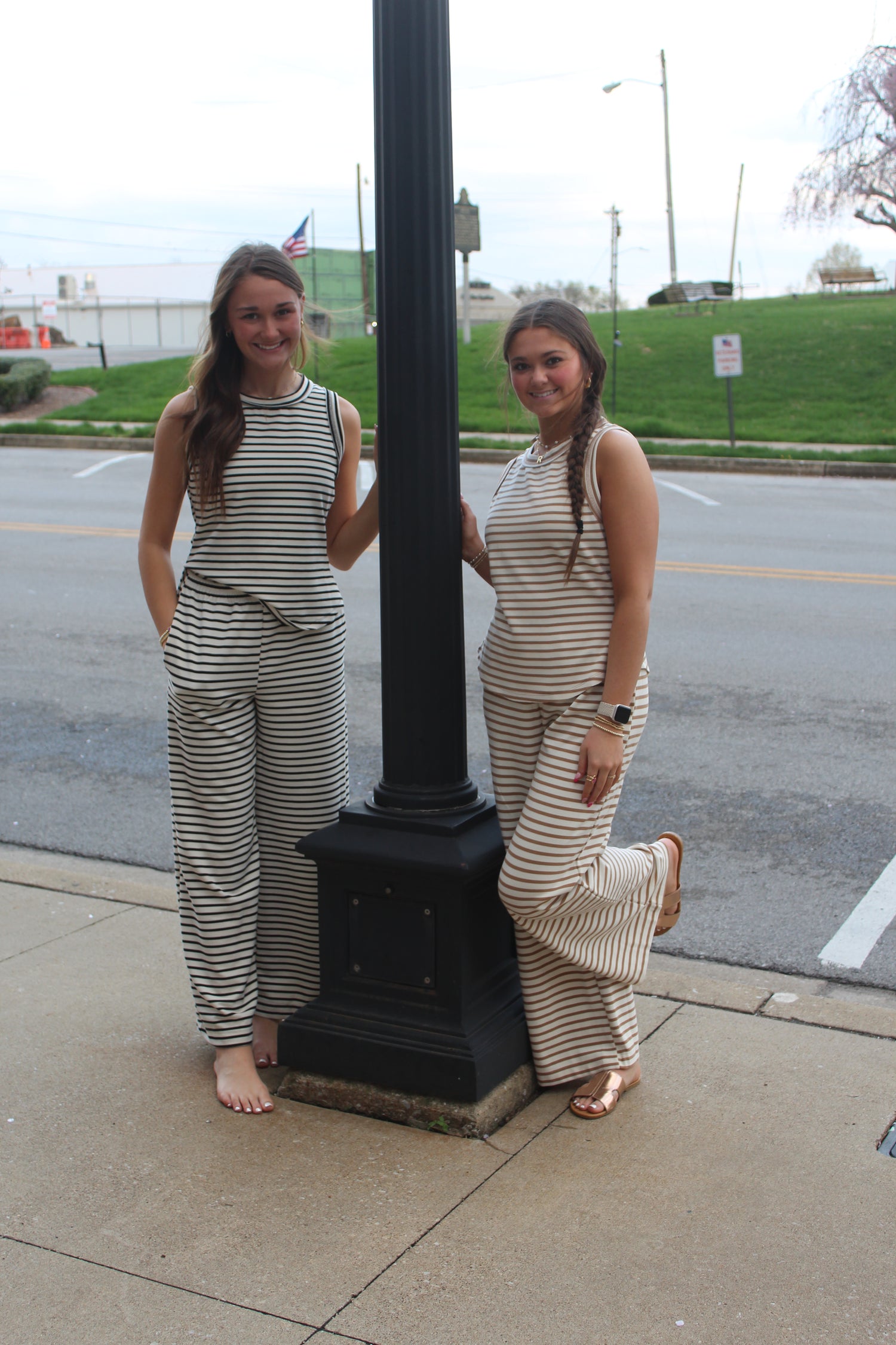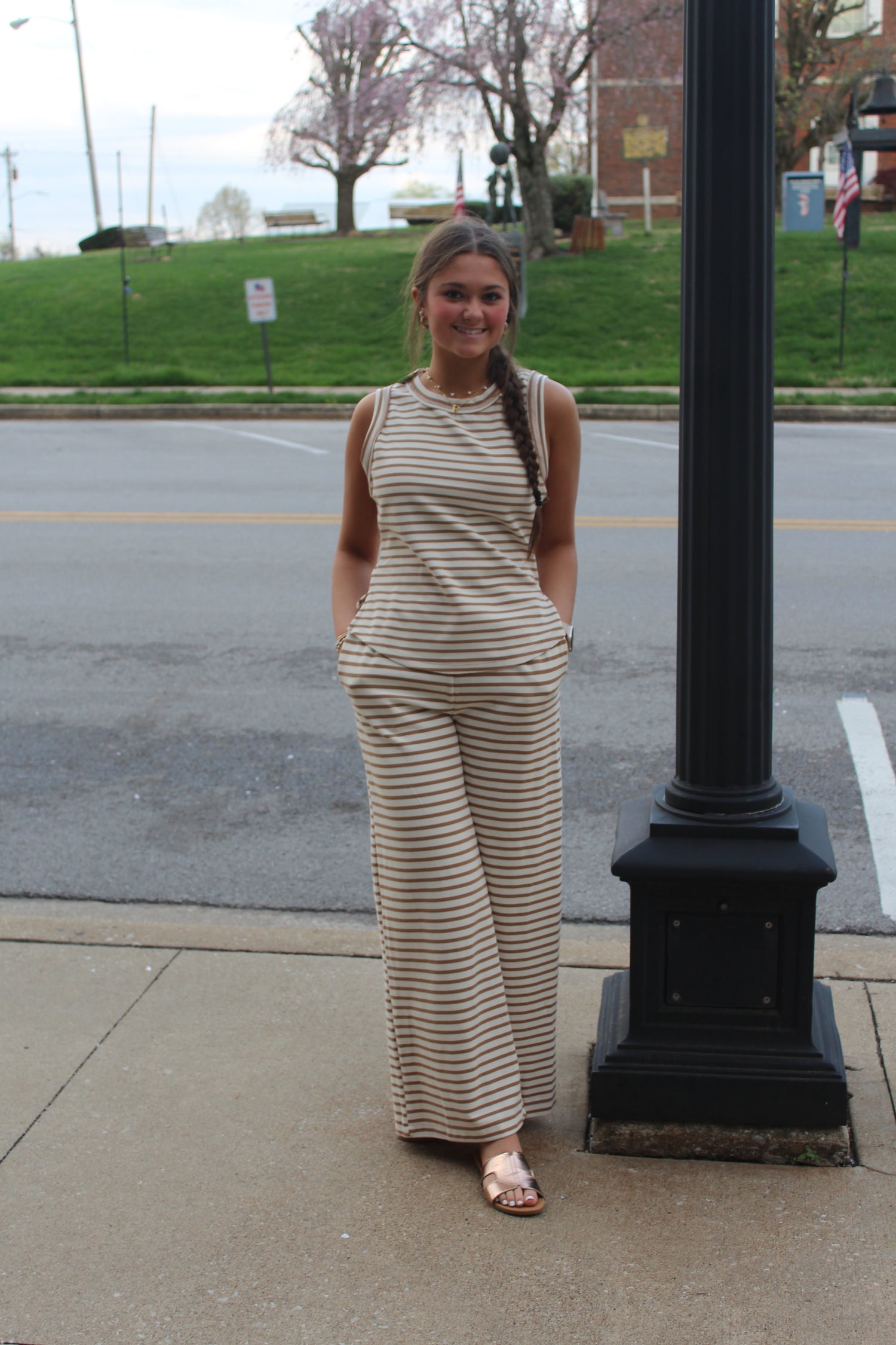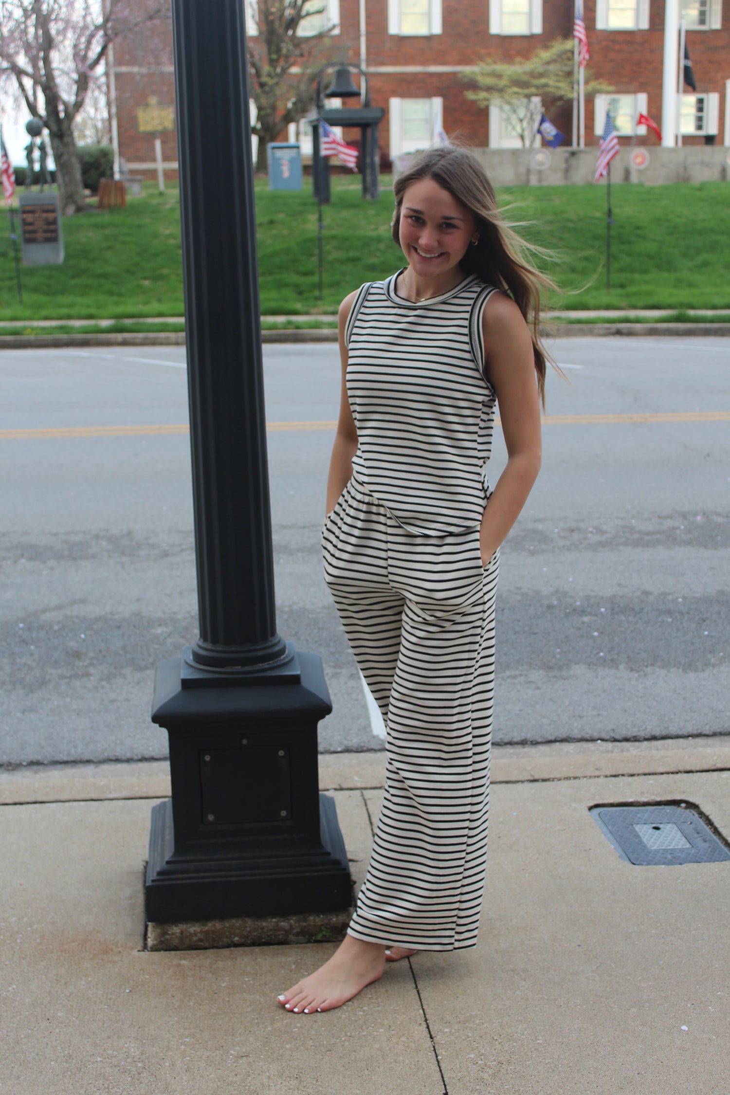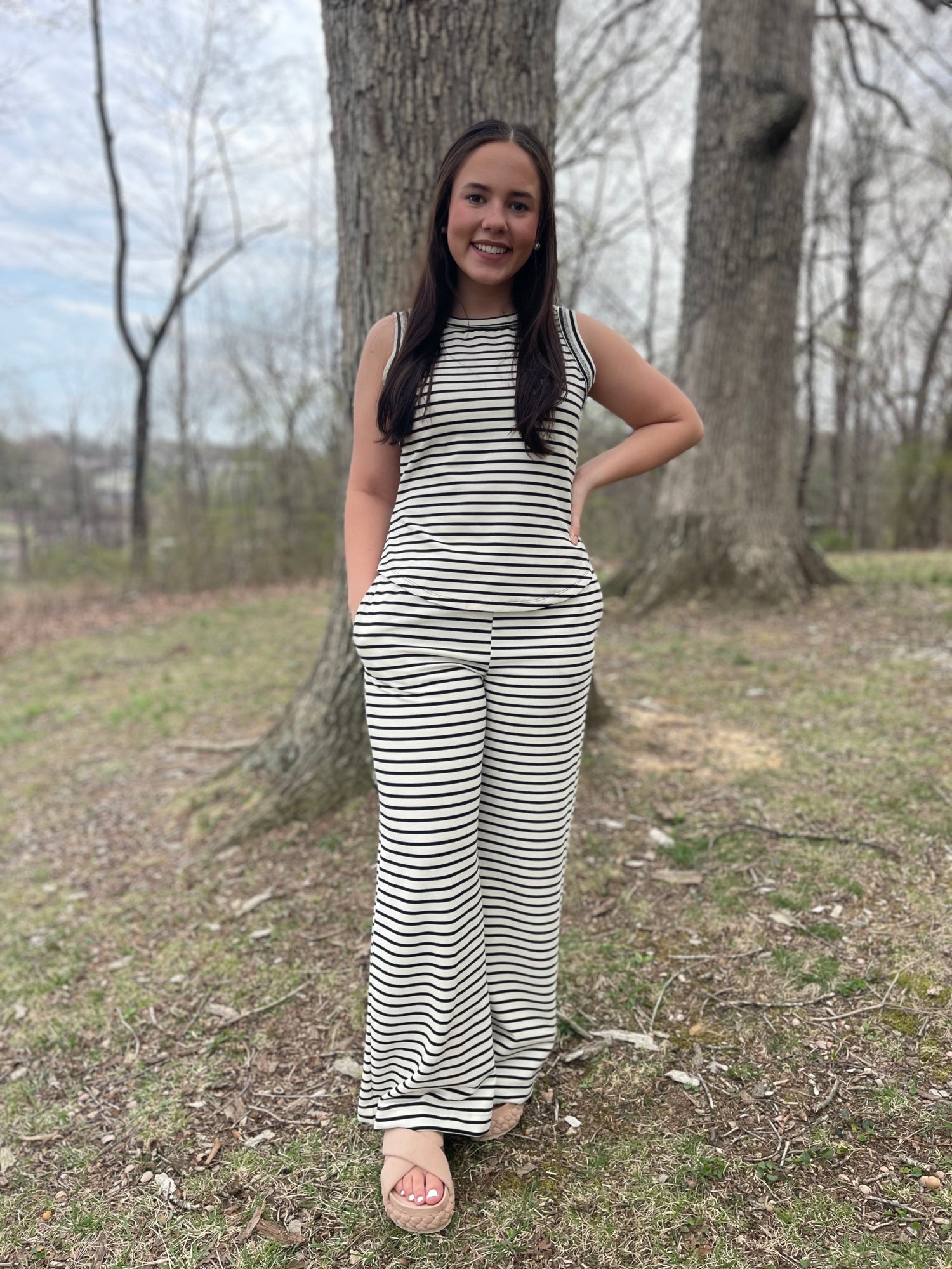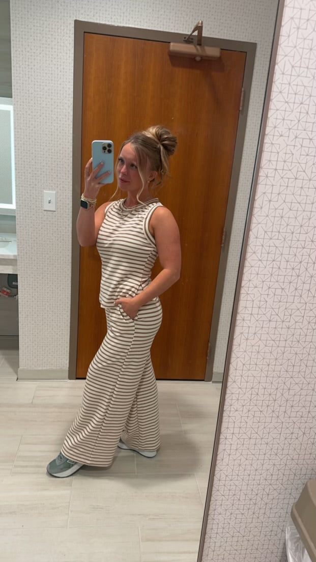 Bottoms: HIGH WAIST ELASTIC WAIST POCKETS WIDE LEG STRIPE PATTERN NOT LINED KNITWEAR LOUNGE PANTS 55% POLYESTER, 40% COTTON, 5% SPANDEX