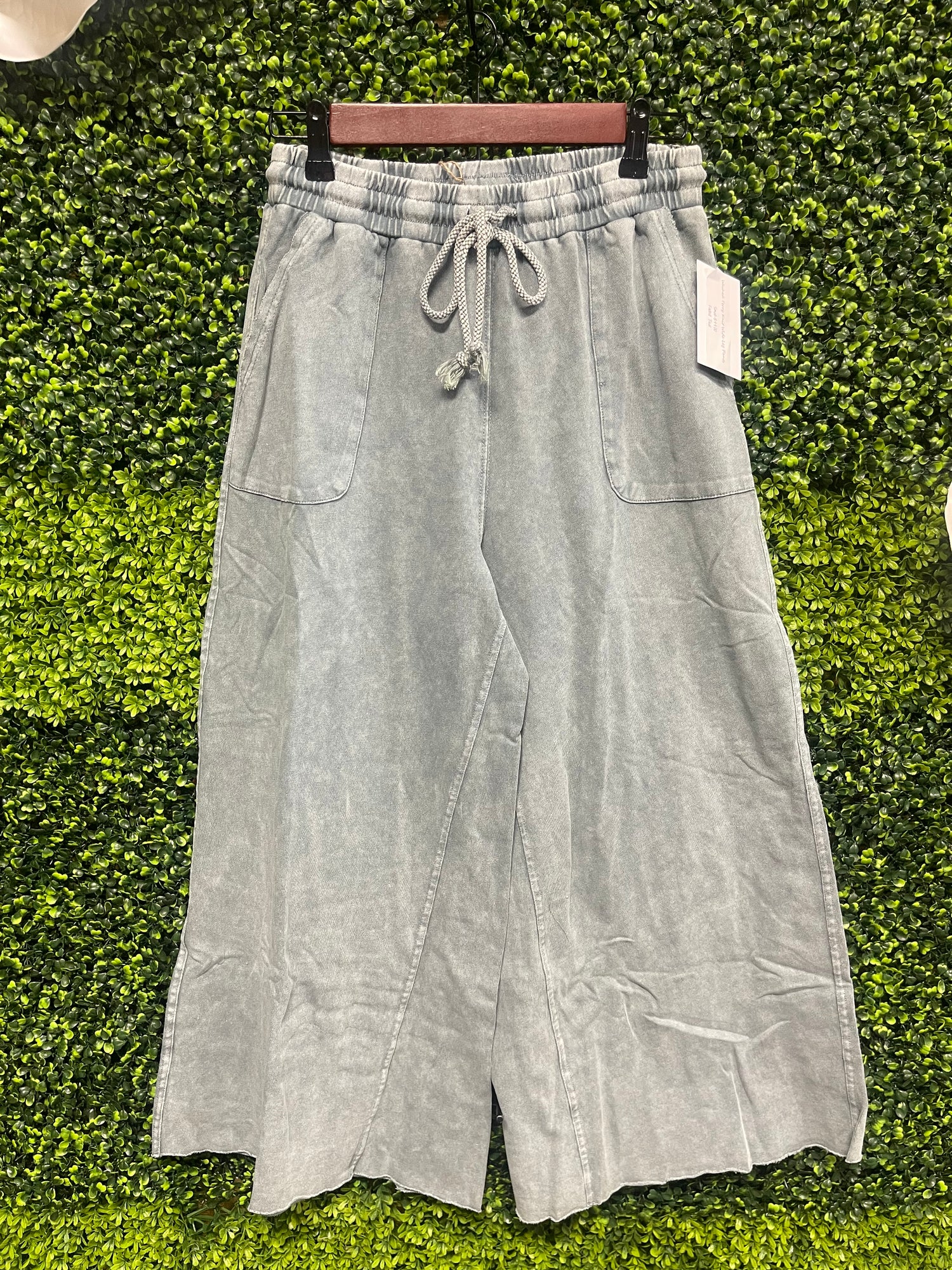Washed Terry Knit Wide Leg Pants